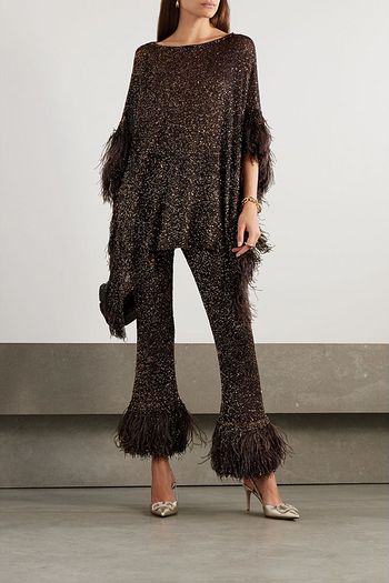 Schlaghose aus einer Woll-Seidenmischung mit Verzierung