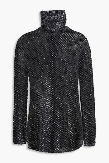 Gerafftes Rollkragenoberteil aus Mesh mit Karomuster