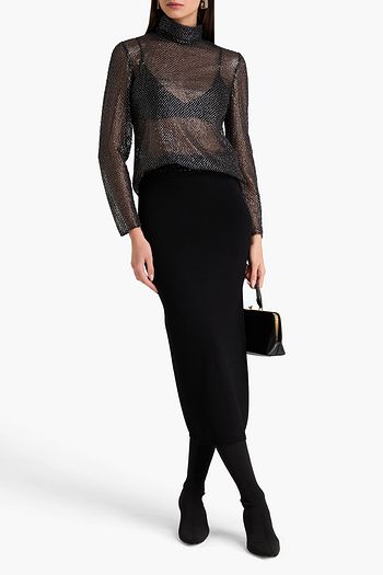 Asymmetrisches Rollkragenoberteil aus Devoré-Samt