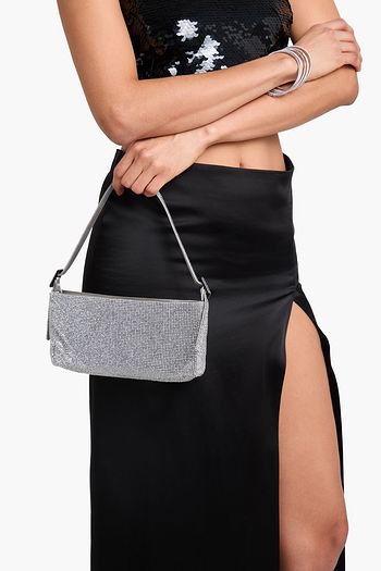 Schultertasche „Vitty La Grande“ aus Satin mit Kristallverzierung