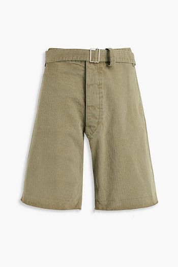 Shorts aus Baumwolle mit Fischgratmuster und Gürtel