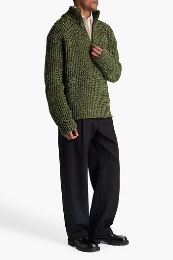 Gerippter Pullover aus Wolle mit Reißverschluss