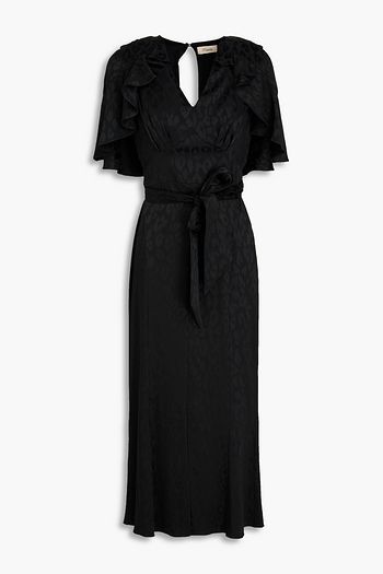 Midikleid „Willow“ aus Jacquard mit Leopardenmuster und Rüschen