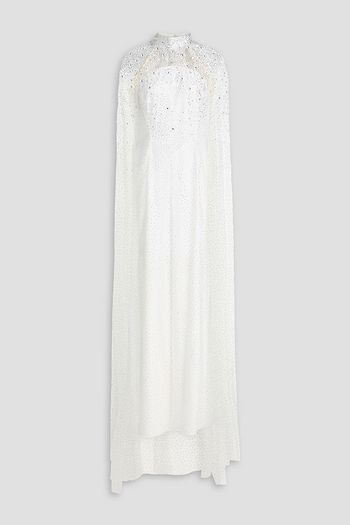 Robe aus Tüll mit Cape-Effekt und Kristallverzierung