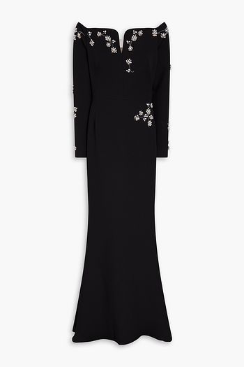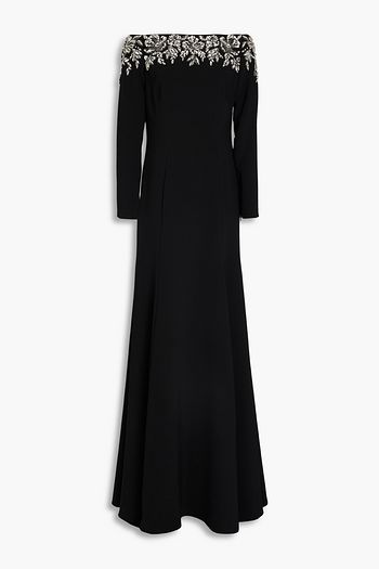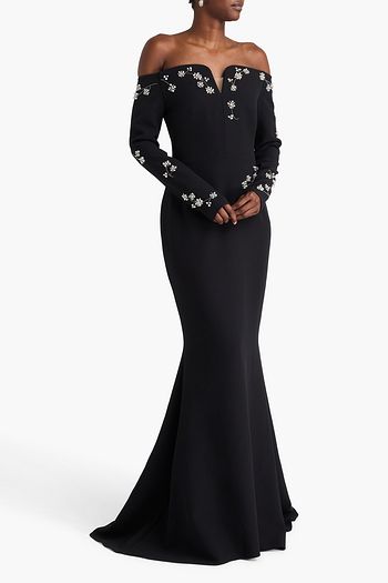 Sachiel Robe aus Crêpe mit Kristallverzierung und asymmetrischer Schulterpartie