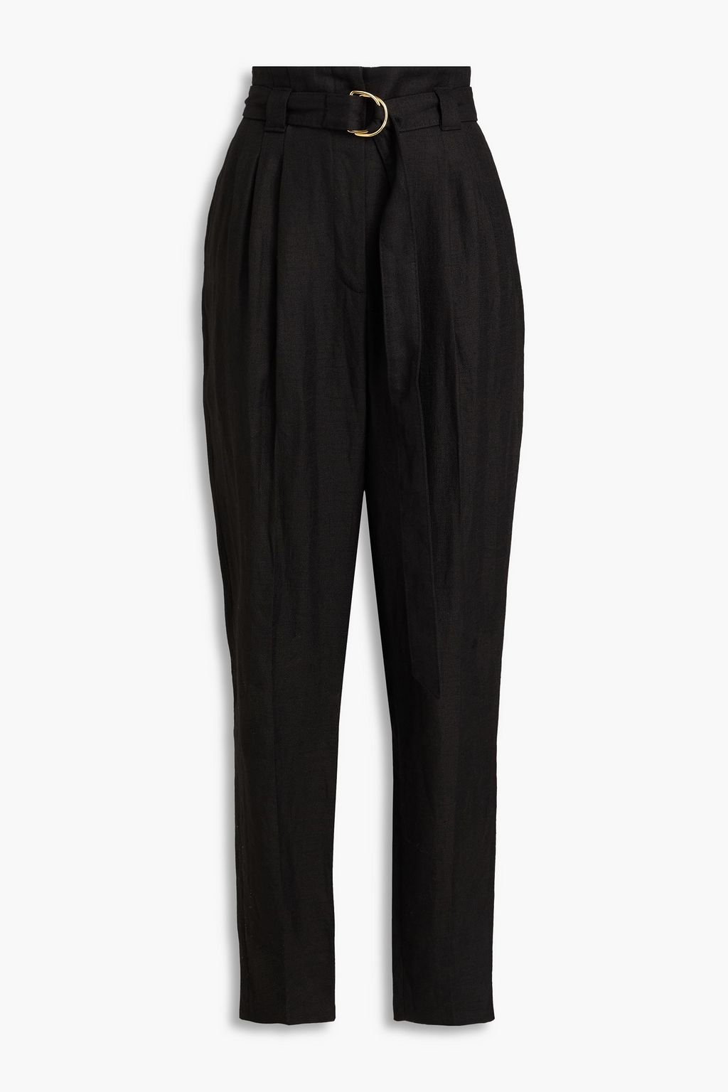 ANOTHER TOMORROW Karottenhose aus Twill aus einer Leinenmischung mit Falten und Gürtel
