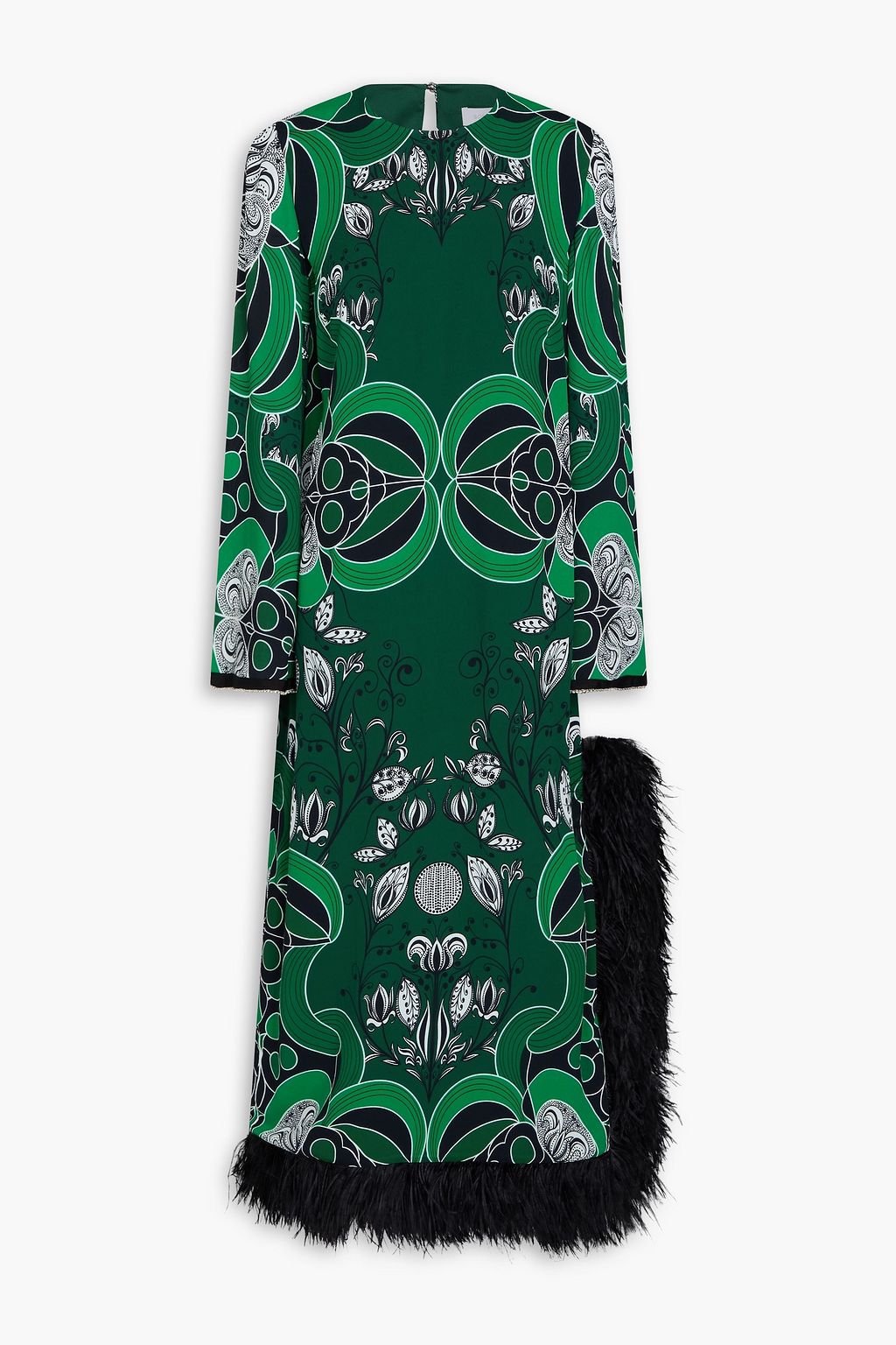 BORGO DE NOR Maxikleid „Seraphina“ aus Crêpe mit Federbesatz und Print