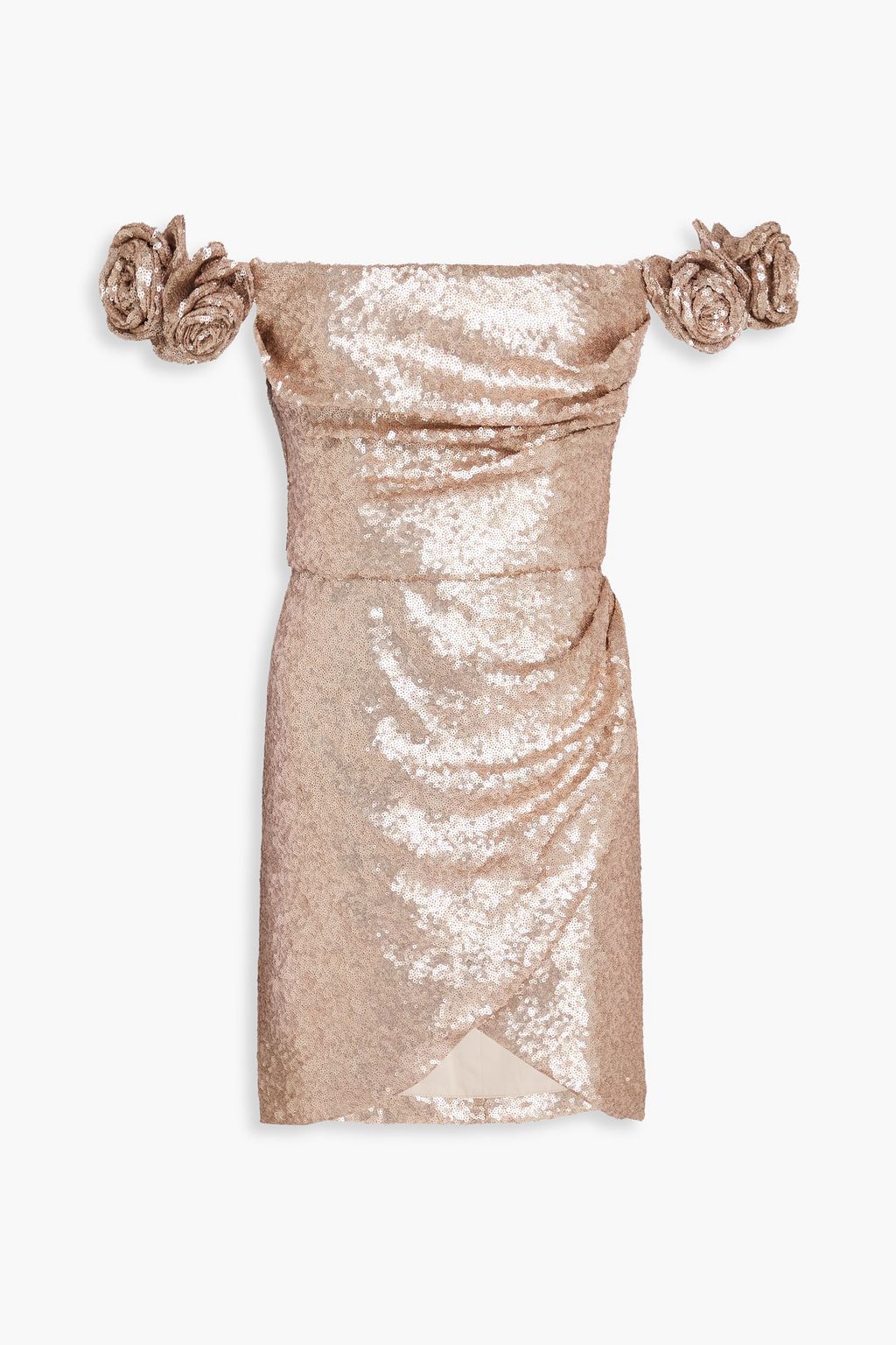 COSTARELLOS Schulterfreies Minikleid aus Tüll mit floralen Applikationen und Pailletten