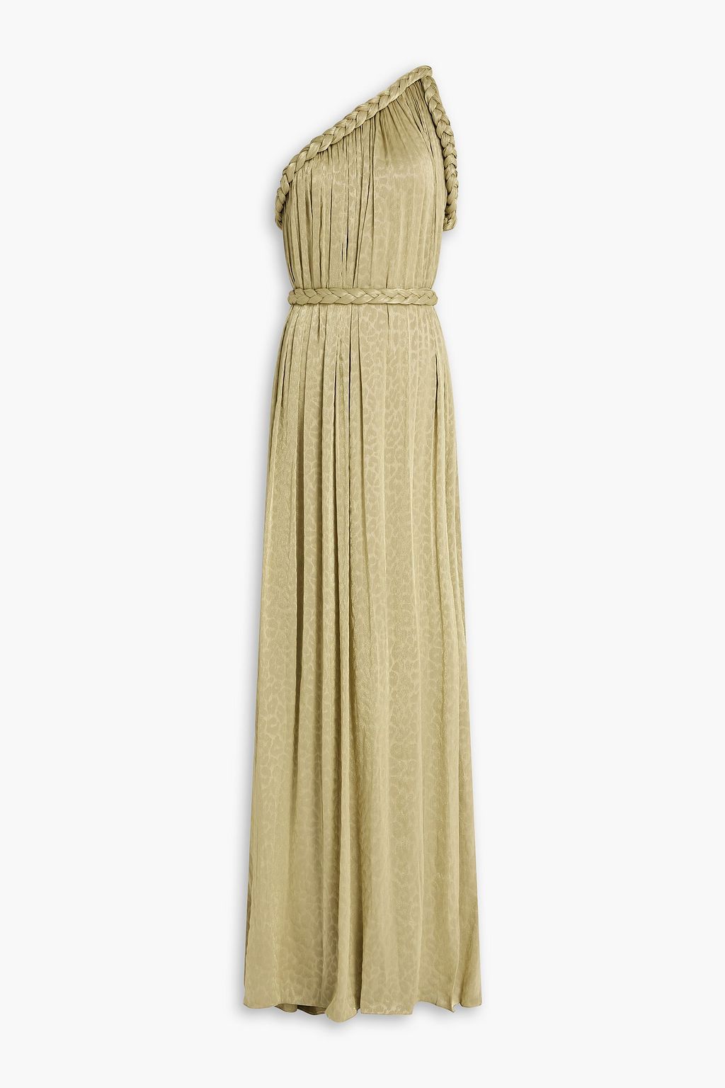 COSTARELLOS Robe aus Georgette mit Leopardenprint, Metallic-Effekt und asymmetrischer Schulterpartie