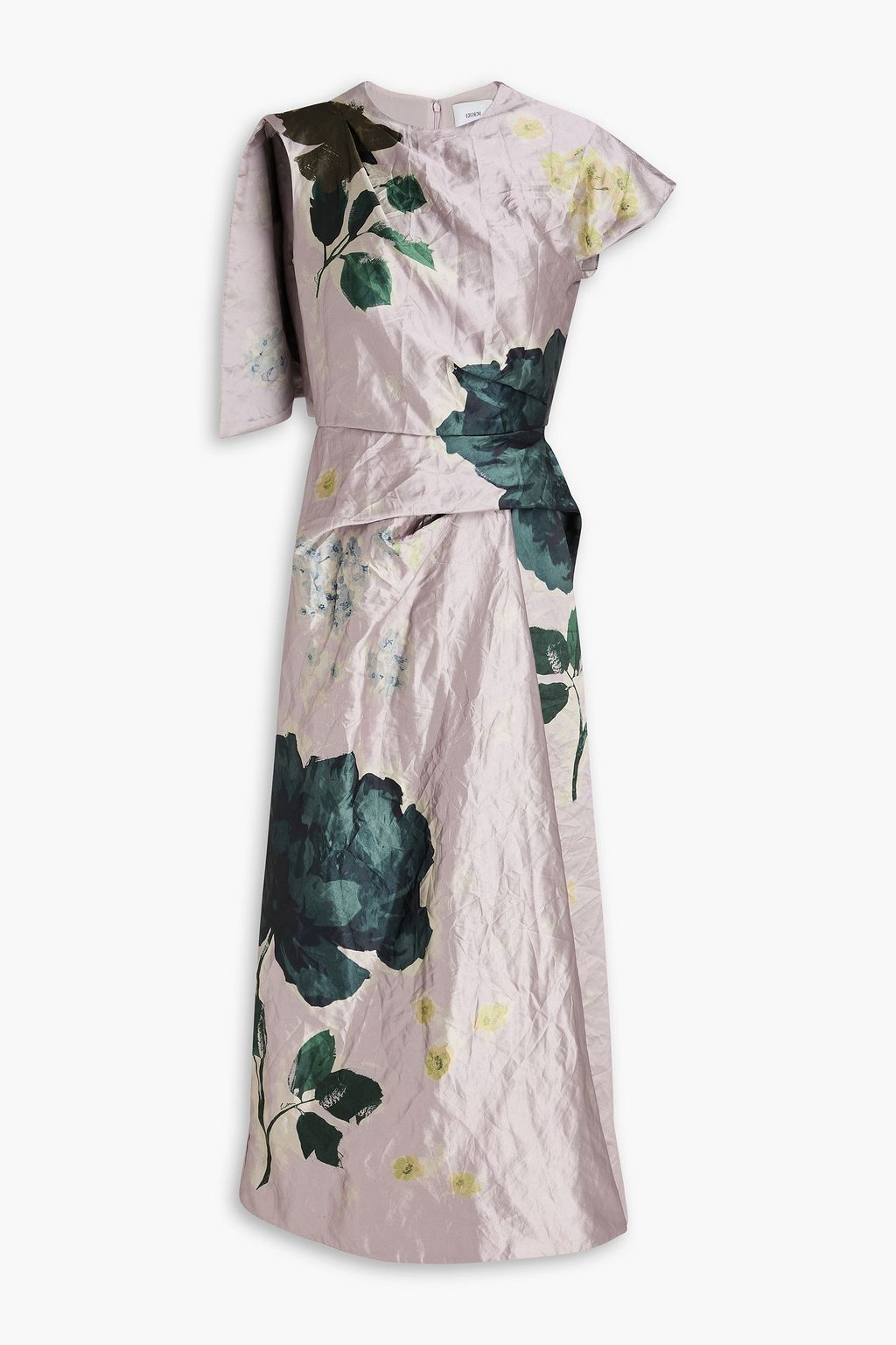 ERDEM Drapiertes Midikleid aus glänzendem Twill mit floralem Print