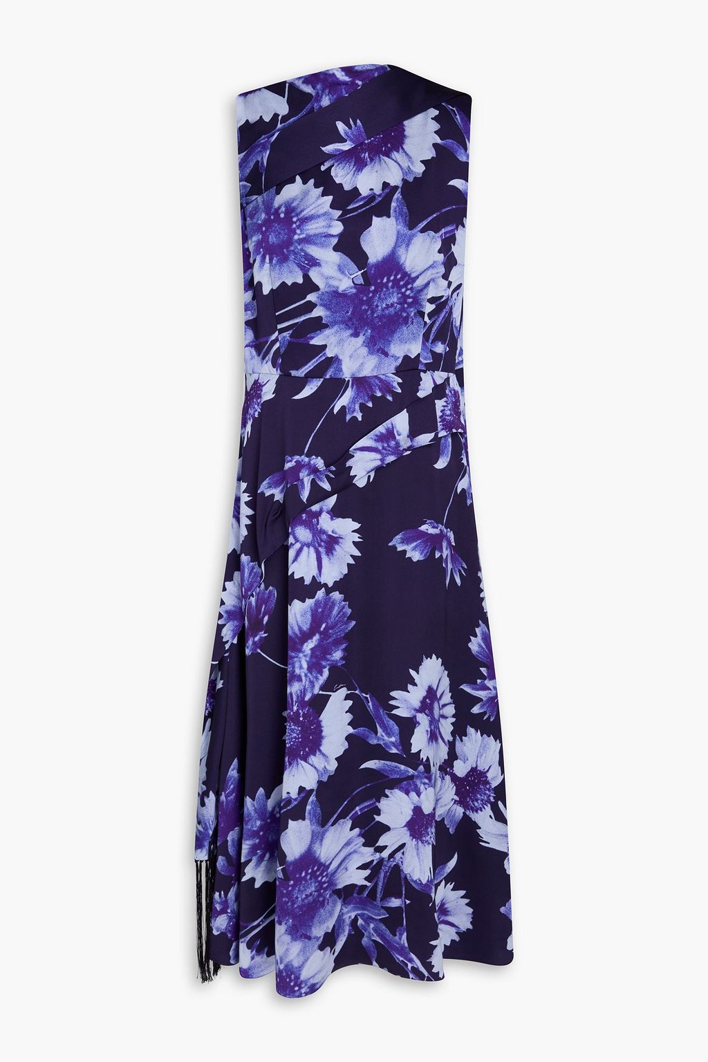 ERDEM Midikleid aus Satin mit floralem Print und Fransen