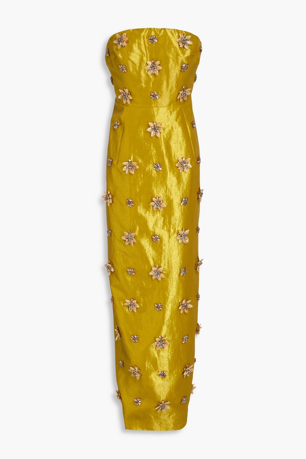 HUISHAN ZHANG Trägerloses Maxikleid aus Taft mit floralen Applikationen