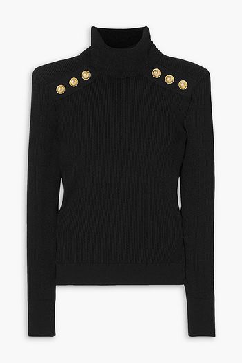 Rippstrickpullover mit Zierknöpfen und Rollkragen