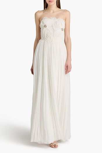 Schulterfreies Minikleid aus Crêpe mit Pailletten, Applikationen und Raffungen