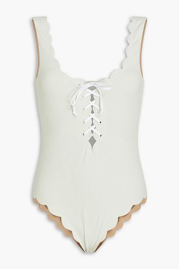 Palm Springs wendbarer Badeanzug aus Seersucker mit Wellenkanten und Schnürung