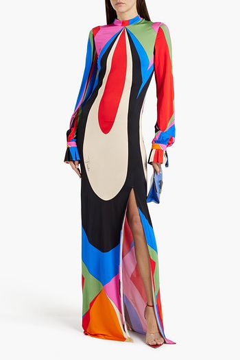 Bedrucktes Maxikleid aus Stretch-Mesh und Baumwoll-Jersey