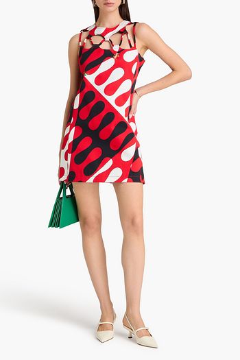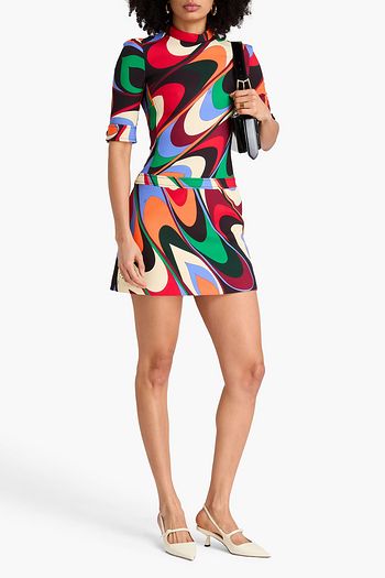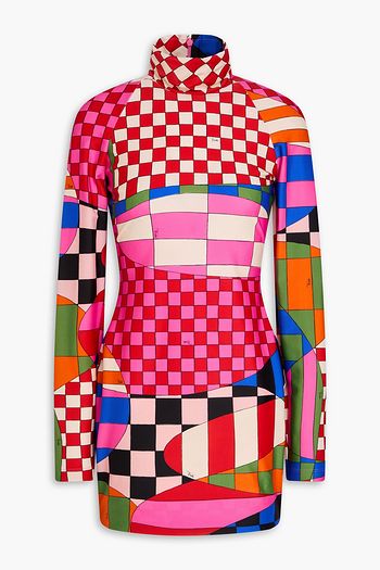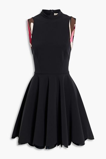 Bedrucktes Minikleid aus Stretch-Crêpe mit Seidenbesatz