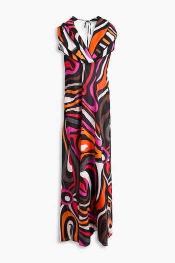 Asymmetrisches Kleid aus bedrucktem Seiden-Georgette