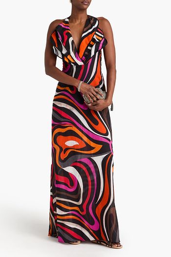 Bedrucktes Maxikleid aus Stretch-Mesh mit Cut-outs