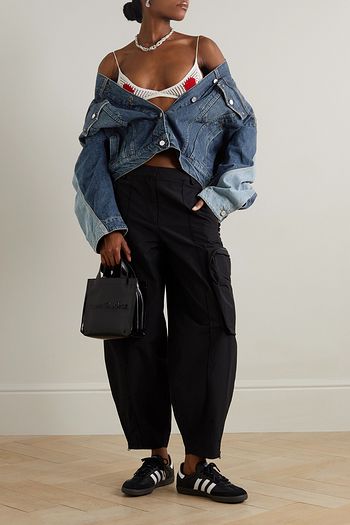 Hoch sitzende Jeans mit weitem Bein und Logoprint