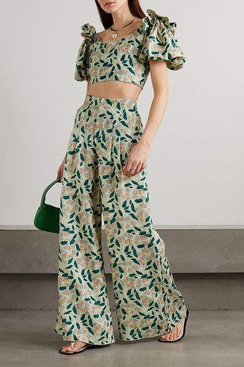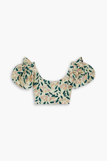 Moringa Clementina Cropped Bustier-Oberteil aus Leinen mit floralem Print und Falten