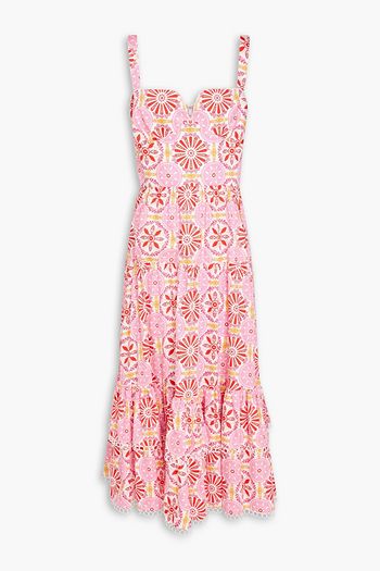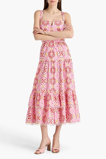 Dani gestuftes Midikleid aus einer bedruckten Baumwoll-Leinenmischung