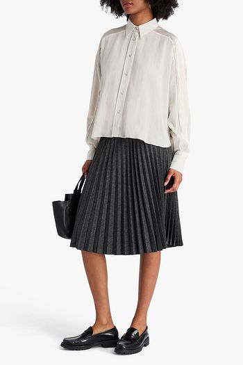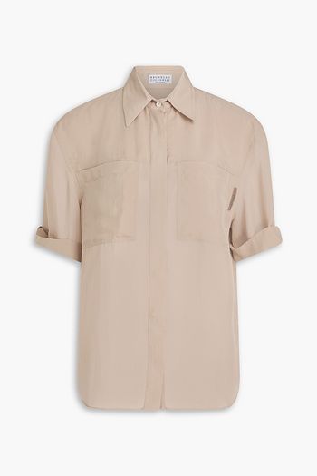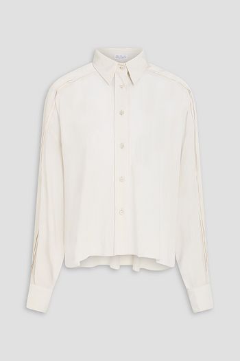 Bead-embellished silk crepe de chine shirt