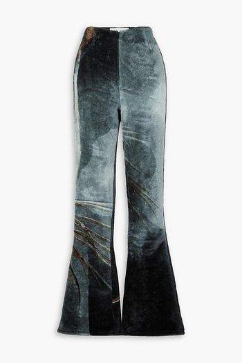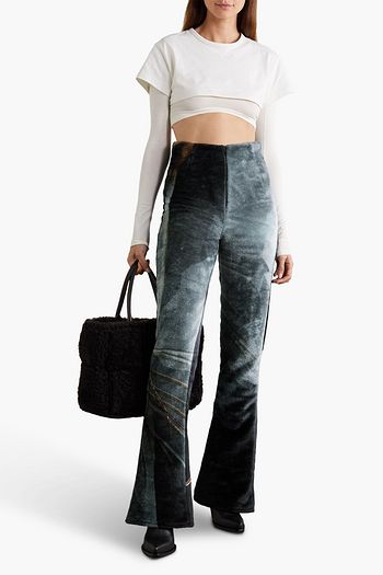 Hoch sitzende Schlagjeans mit Einsätzen aus Stretch-Jersey