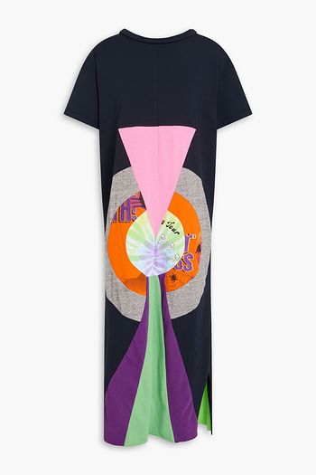 Midikleid aus Baumwoll-Jersey mit Print und Besätzen aus Makrameegarn