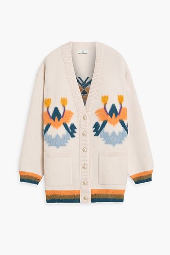 Kick-flare-Hose aus Jacquard-Strick aus einer Wollmischung