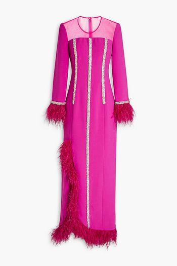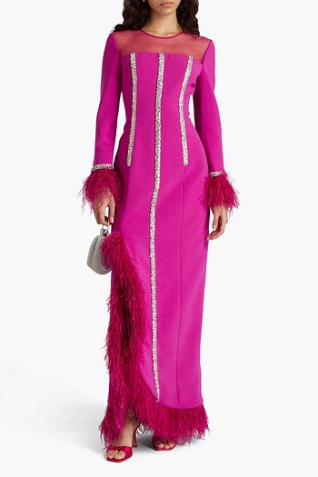 Beau Robe aus Seidenorganza mit Federn und Ripsbandbesätzen