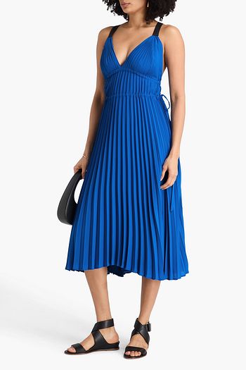 Wren Midikleid aus plissiertem Crêpe mit Samtbesatz