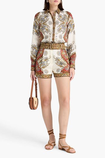 Hoch sitzende Cropped Jeans „Taylor“ mit weitem Bein und Kristallverzierung