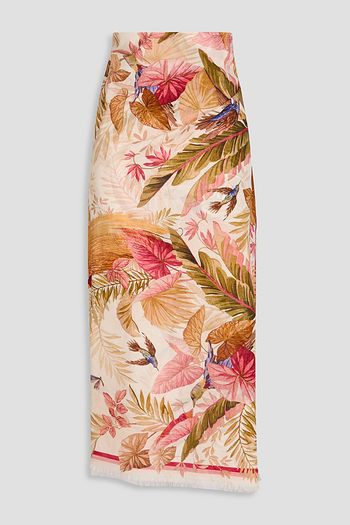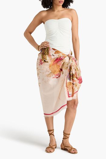 Frayed printed cotton-gauze pareo