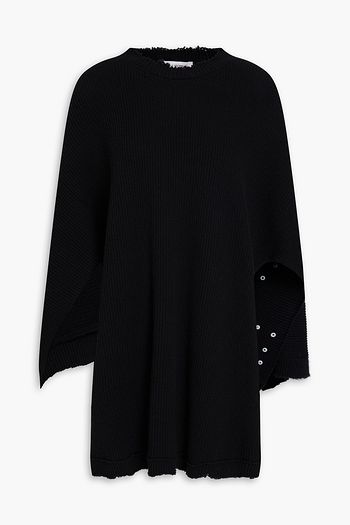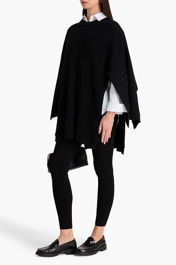 Bead-embellished cotton-blend hooded poncho