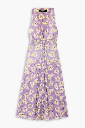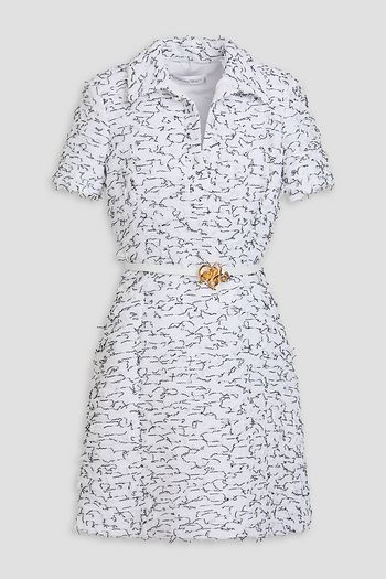 Bedrucktes Midikleid mit Lochstickerei und Gürtel