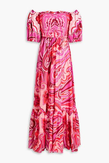 Schulterfreies Midikleid aus Baumwoll-Voile
