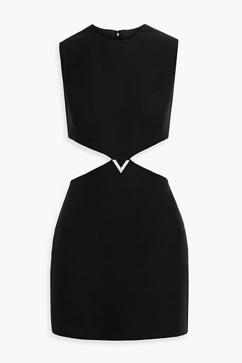 Verziertes Minikleid aus Crêpe aus einer Woll-Seidenmischung mit Einsätzen aus schnurgebundener Spitze