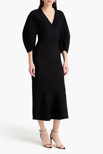 Midikleid aus Woll-Crêpe mit Cape-Effekt
