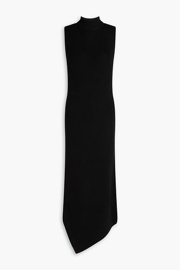Maxikleid aus Rippstrick und Crêpe mit Rollkragen