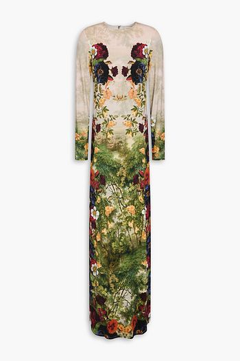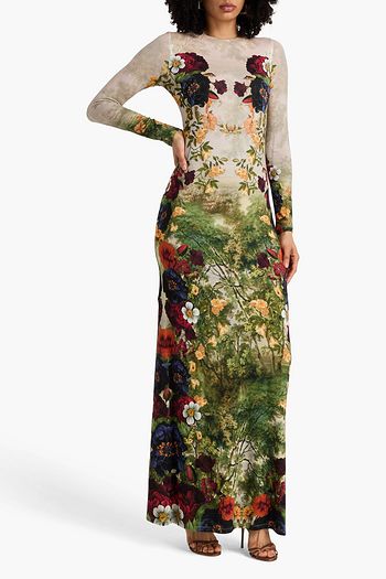Maxikleid „Eden“ aus Organza aus einer Woll-Seidenmischung mit floralem Print und Einsätzen aus schnurgebundener Spitze