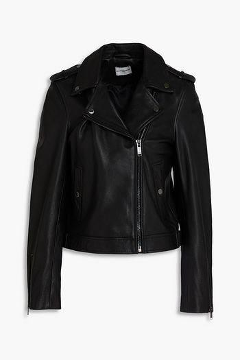 Doppelreihige Bikerjacke aus Leder mit Leopardenprint