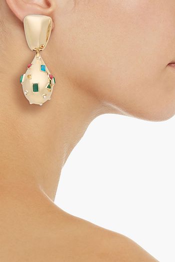 Goldfarbene Ohrringe mit Süßwasserperlen und Topas