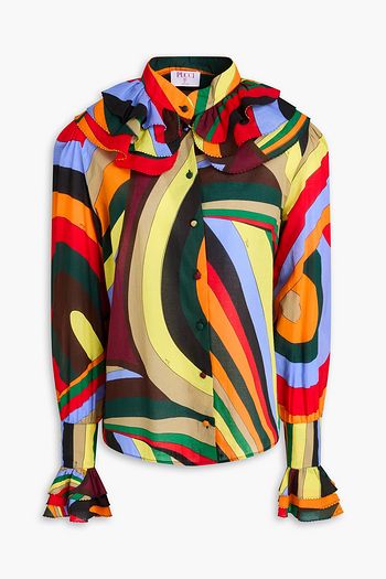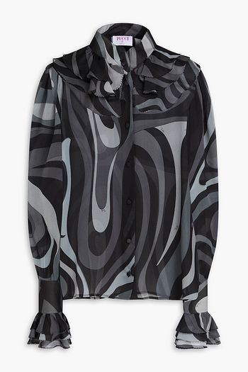 Bluse aus Seidenkrepon mit Print und Rüschen
