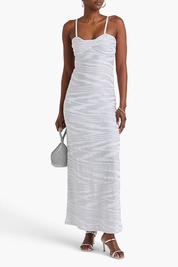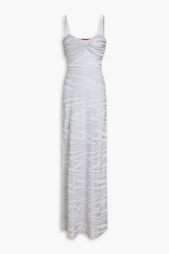 Neckholder-Maxikleid aus Jacquard mit Spitzenbesatz