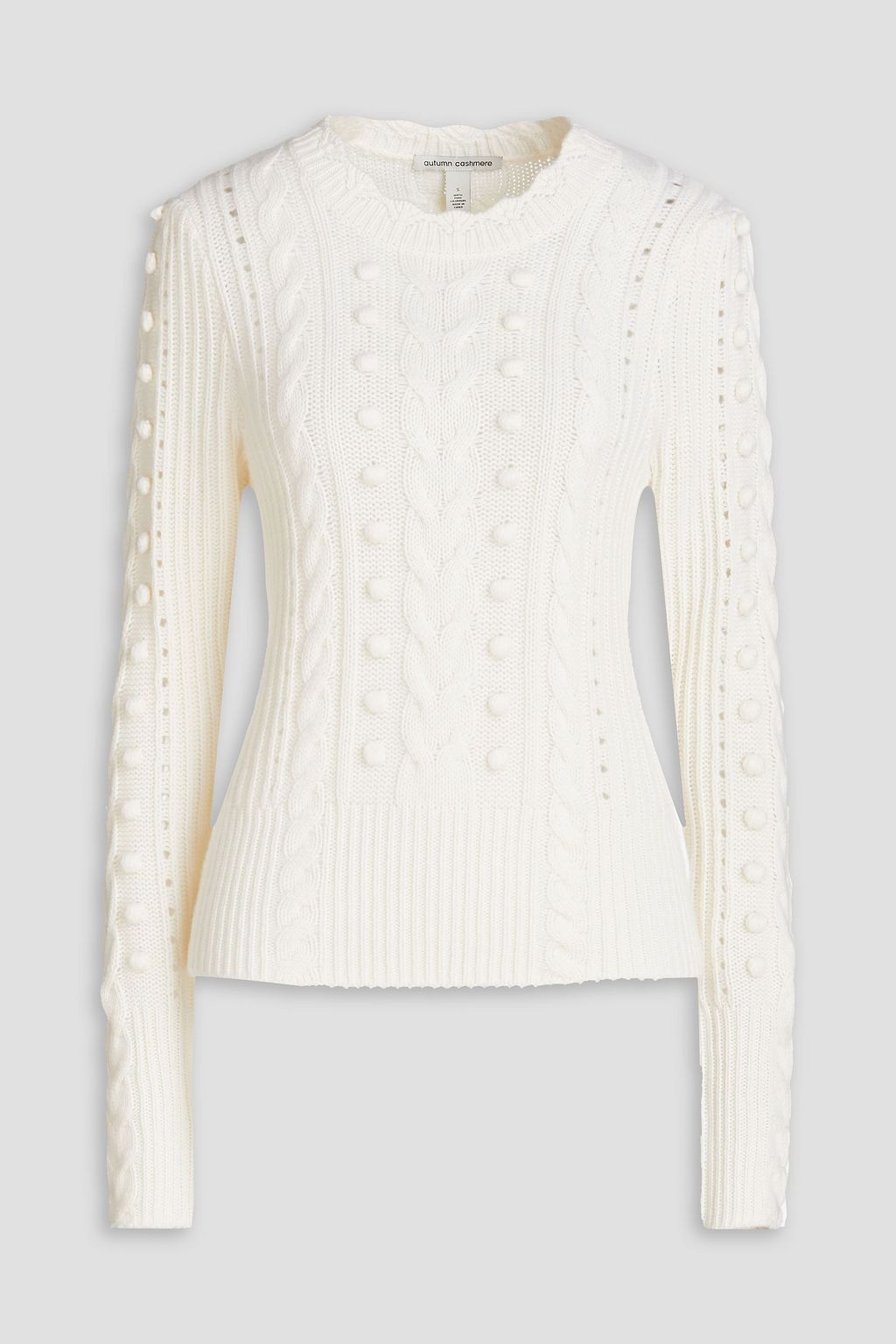AUTUMN CASHMERE Kaschmirpullover mit Zopfstrickmuster und Pompons