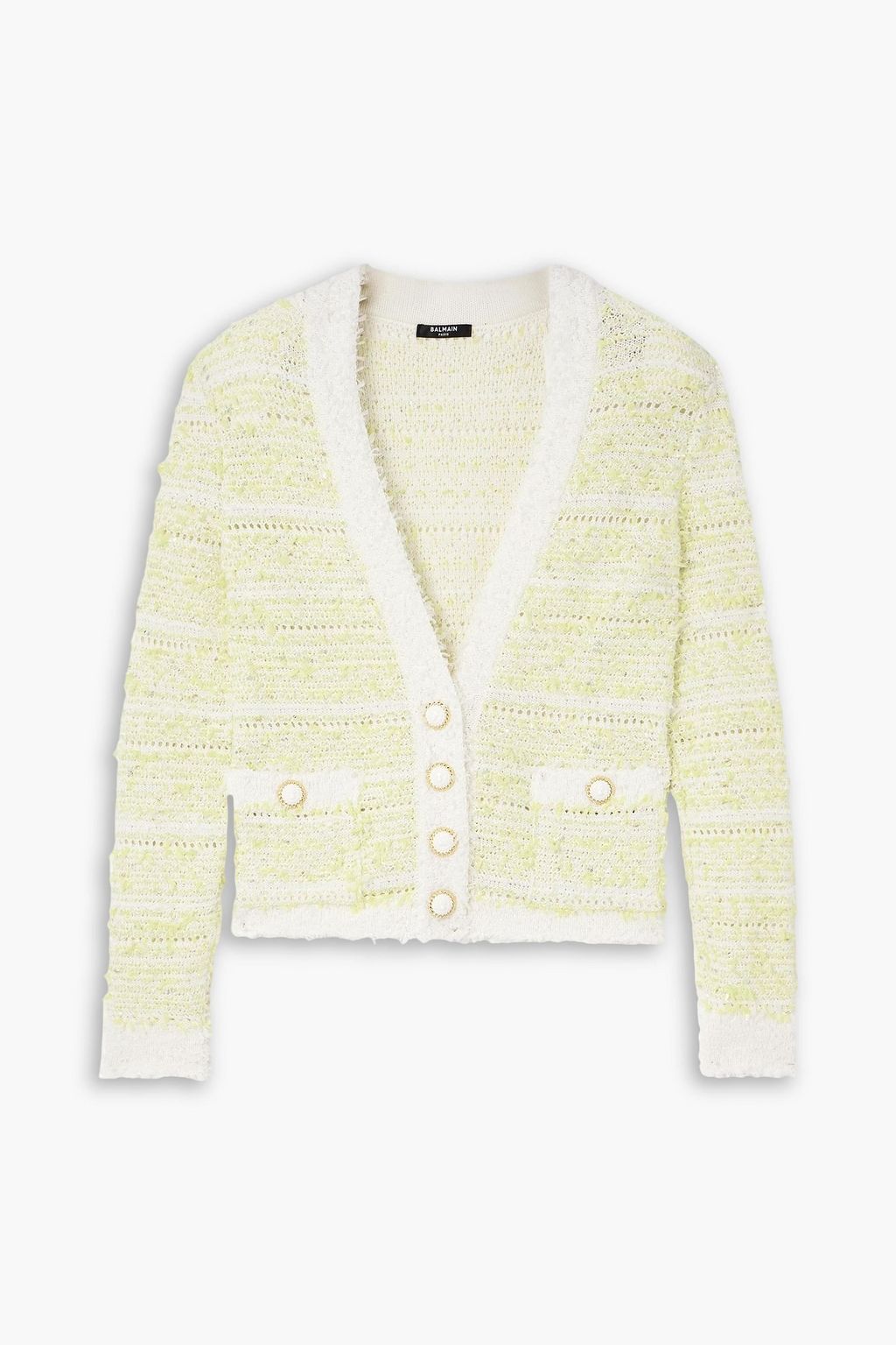 BALMAIN Cardigan aus Tweed aus einer Baumwollmischung mit Streifen in Metallic-Optik