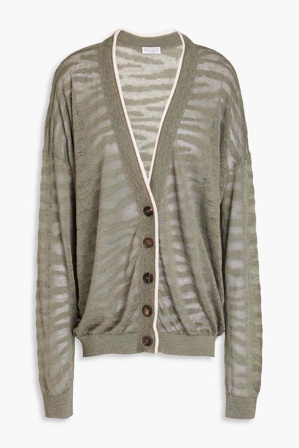 BRUNELLO CUCINELLI Cardigan aus Strick aus einer Leinenmischung mit Intarsienmuster und Zierperlen