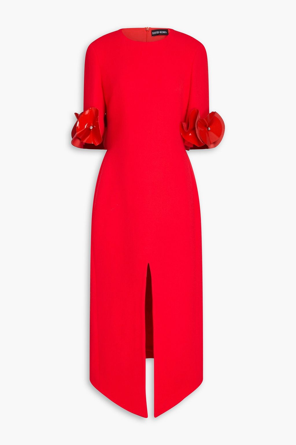 DAVID KOMA Midikleid aus Woll-Crêpe mit Kristallverzierung