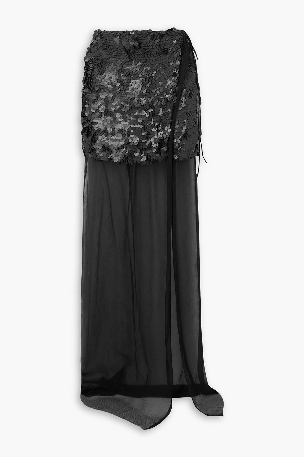 DRIES VAN NOTEN Mehrlagiger Maxi-Wickelrock aus Tüll mit Pailletten